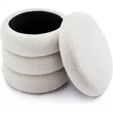 Use our battle tested marketing materials for Small Boucle Storage Ottoman – Round Sherpa Footstool with Removable Lid