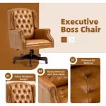 Upgrade your office or home workspace with a chair that blends luxury, function, and ergonomic design. This Tufted Faux Leather Executive Office Chair is crafted for professionals who value both comfort and aesthetics. Its elegant camel color, wingback silhouette, and decorative nailhead trim offer a timeless look that suits modern, traditional, or transitional décor. Whether you're leading a boardroom meeting or tackling daily tasks, this chair keeps you comfortably supported with its high back and plush padding.
