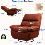 Transform your living space with the Oversized Swivel Rocker Recliner Chair, designed to provide the perfect blend of comfort, convenience, and style. Whether you’re lounging after a long day, enjoying your favorite TV show, or taking a restful nap, this chair is built for ultimate relaxation. With its 360-degree swivel and 155-degree reclining feature, it offers unparalleled flexibility to accommodate all your seating preferences.