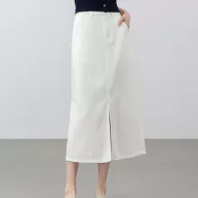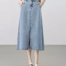 Use our battle tested marketing materials for Elegant A-Line Denim Skirt with Slit – Cotton Blend Mid-Calf Skirt for Women