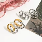 These earrings are made from high-quality stainless steel and finished with an 18K PVD gold plating, giving them a radiant, lasting shine. Designed to resist fading, scratches, and tarnishing, they're made to keep up with your lifestyle. You can wear them while swimming, showering, or sweating — they’re completely waterproof and built to last. With a two-tone gold finish and geometric form, they are both classic and fashion-forward.