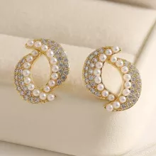 Use our battle tested marketing materials for Elegant Double Moon Pearl Stud Earrings for Women – Hollow Oval Design