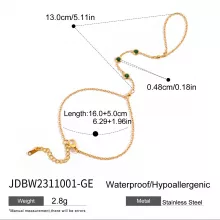 Use our battle tested marketing materials for Elegant Green Zircon Finger Bracelet – 18K Gold Plated Stainless Steel
