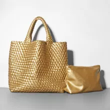 Use our battle tested marketing materials for Golden Knit Large Capacity Woven Shoulder Handbag for Women - Beach Holiday Purse