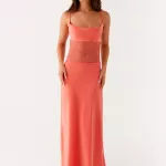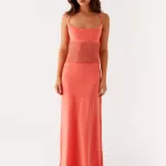 - Fit: Slim, ankle-length silhouette with spaghetti straps and scoop neckline