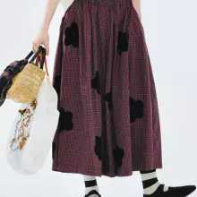 Step into the season with effortless elegance in these red checkered wide-leg pants, a standout piece for women who love to blend bold design with relaxed comfort. These pants feature a unique dark grid pattern with delicate three-dimensional lace detailing that gives them a touch of artistic charm. Designed with an easy-going silhouette and a loose fit, they bring together classic Japanese style with modern functionality, making them perfect for women who appreciate a fresh take on fashion.