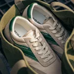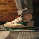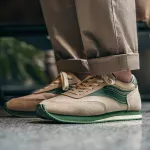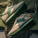 Inspired by 80’s retro jogging shoes, these color-block sneakers feature a stylish blend of green and other vibrant hues, making them stand out from the crowd. The herringbone sole pattern not only adds to the vintage aesthetic but also offers superior grip and traction for everyday use. The EVA outsole material is lightweight and durable, ensuring these shoes can keep up with your active lifestyle while providing all-day comfort. With a synthetic upper material that is both flexible and breathable, these shoes are designed for the modern man who values both fashion and function.