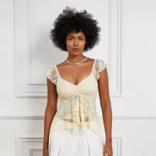 Use our battle tested marketing materials for Women’s Summer V Neck Lace Crop Top with Ruffle Sleeves