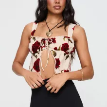 Use our battle tested marketing materials for Vintage Floral Square Neck Lace Trim Tie-Front Tank Crop Top