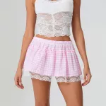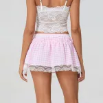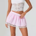 Turn heads with this ultra-stylish High Waist Plaid Mini Skirt, designed for women who love to express their bold side. Featuring a flattering A-line silhouette, delicate floral lace patchwork, and playful frill trim, this mini skirt adds the perfect touch of femininity with a modern Y2K edge. Whether you're heading out for a casual day, a night with friends, or dressing up for a date, this skirt effortlessly blends comfort with on-trend fashion.Designed for Every Body