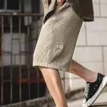 Level up your casual wardrobe with these men's retro-style loose cargo shorts, designed to keep you looking sharp and feeling cool when the temperature rises. Whether you're headed to the beach, shooting hoops, or just enjoying a laid-back day outdoors, these shorts deliver the perfect mix of function and style. The textured waffle cotton fabric gives them a unique draping effect that stands out from ordinary shorts, while the relaxed fit ensures comfort all day long. Built with everyday wear in mind, these shorts fall to the knee and feature a mid-rise elastic waistband for a secure yet easy fit. They're crafted from heavyweight cotton, giving them a sturdy, quality feel without sacrificing breathability. With their clean solid color design and utilitarian-inspired pocket layout, they strike the right balance between vintage workwear and modern casualwear. From lounging to light activity, these shorts transition seamlessly through all your summer plans.Product Features