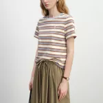 Made from 100% natural cotton, this short-sleeved T-shirt offers soft, lightweight breathability that feels great against the skin. The fabric has a subtle stretch that keeps movement easy, while the round neckline and regular length give you a versatile shape that flatters most body types. The striped pattern adds a vintage touch, making this tee a stylish essential for spring and summer.
