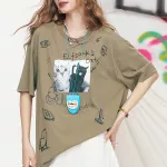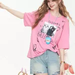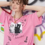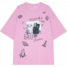 Playful, bold, and effortlessly cool – this Pink Cat Graffiti Print T-Shirt is your go-to summer essential. Designed with a splash of street-style charm, it features a quirky hand-drawn cat print in vibrant shades of pink and white, making it the perfect conversation starter. Whether you're heading to brunch, running errands, or chilling at the park, this casual tee adds a touch of personality to any outfit. Crafted from a lightweight blend of breathable cotton and soft polyester, this tee feels as good as it looks. The loose fit gives you room to move and keeps you cool in warm weather, while the short sleeves and classic O-neck design offer a timeless silhouette that flatters all body types. With a regular length that pairs effortlessly with jeans, shorts, or skirts, this top was made for easy, everyday style. Best worn during sunny days, summer getaways, or relaxed weekends, this top is more than just another graphic tee – it’s a mood booster. Whether you’re drawn to its artsy vibe or just love a good cat print, it brings a lighthearted flair to your wardrobe without trying too hard.Product Features
