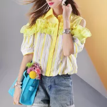 Use our battle tested marketing materials for Women's Off Shoulder Striped Ruffle Shirt - Summer Hip Hop Streetwear Top