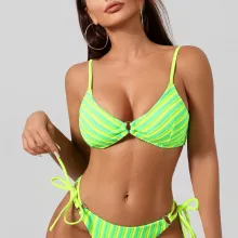 Use our battle tested marketing materials for Fluorescent Green Striped Triangle Bikini Set