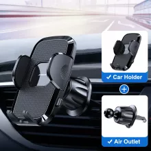 This universal car phone holder is packed with thoughtful features to make every drive smoother. Its powerful suction base, reinforced by a curved rod design, sticks securely to dashboards, windshields, and even air vents. The mechanical push switch locks your phone in place, while the shockproof design ensures zero wobble, even on the bumpiest roads. With full 360° rotation and a one-handed locking system, it's built to keep your eyes on the road and your phone firmly in place.