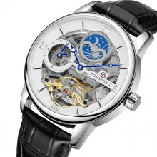 Turn heads with every flick of your wrist with this Luxury Skeleton Automatic Watch, built for men who value classic craftsmanship and cutting-edge detail. Featuring a sleek skeleton dial, moonphase display, and dual time zone functionality, this timepiece is more than a stylish accessory — it’s a daily reminder of your refined taste and attention to detail.