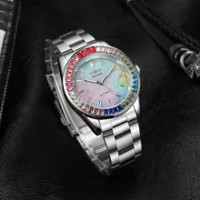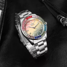Command attention and express your unique style with this Luxury Colored Diamond Mechanical Watch. Designed for men who appreciate bold design and masterful engineering, this automatic timepiece blends elegance with eye-catching detail. With vibrant colored diamond hour markers and a polished stainless steel finish, this watch is the perfect combination of precision and personality.