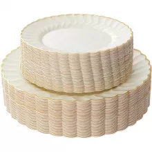 Use our battle tested marketing materials for 60-Pack Ivory Scalloped Disposable Plastic Plates with Gold Rim