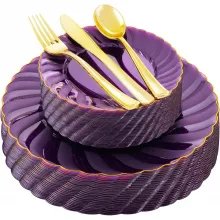 Use our battle tested marketing materials for 125-Piece Purple Plastic Plates Set with Gold Rim