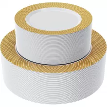 Use our battle tested marketing materials for Gold Plastic Plates Set for 51 Guests