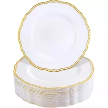 Use our battle tested marketing materials for 60pcs White and Gold Disposable Dinner Plates