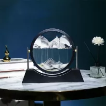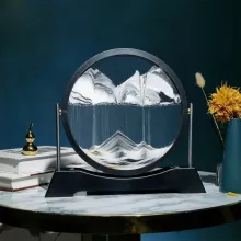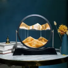 This stunning sand painting features a circular glass frame filled with ultra-fine colored sand, suspended in a transparent liquid. The base allows for easy rotation, giving you a fresh visual every time you flip it. Perfect for your office desk, living room shelf, or as a thoughtful gift, this piece is more than decor—it’s a relaxing escape from the everyday hustle. Its post-modern look adds a touch of sophistication while maintaining a playful, meditative appeal.
