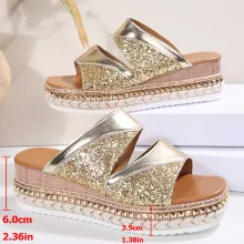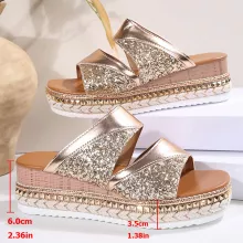 Use our battle tested marketing materials for Gold Sequin Wedge Platform Sandals for Women