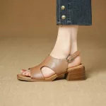 Step into summer with these stunning retro gladiator sandals, designed to bring timeless Roman flair to your wardrobe. Crafted from genuine cow leather, these open-toe sandals combine elegance and durability, making them perfect for warm weather outings. Featuring a stylish square high heel, they add just the right amount of lift—measuring between 2 to 3 inches—to elevate your look without sacrificing comfort. The buckle strap ensures a secure, adjustable fit, while the back strap adds stability for all-day wear.