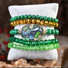 Use our battle tested marketing materials for Boho Green Druzy Quartz & Agate Charm Stretch Bracelet Stack Set