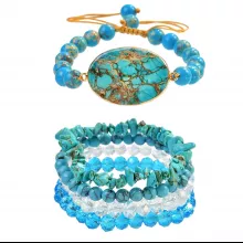 Use our battle tested marketing materials for Blue Imperial Jasper & Aquamarine Bracelet for Throat Chakra Balance & Clarity