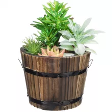 Use our battle tested marketing materials for Rustic Wooden Round Barrel Planter - Vintage Style Flower Pot for Succulents & Garden