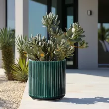 This planter is perfect for year-round use, whether you're brightening your entryway in spring, decorating your patio for summer, or bringing greenery indoors during cooler months. Its versatility, combined with the richness of the jade glaze and timeless ribbed detail, makes it more than just a planter—it’s a piece of art that enhances your space.