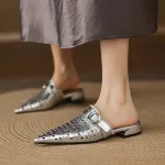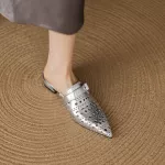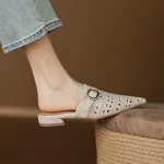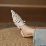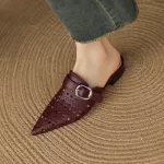 Perfect for indoor settings, these mules are ideal for lounging in style, working from home, or casual gatherings. Their breathable genuine leather and low heel make them comfortable for extended wear, while the pointed toe and slingback design elevate your look effortlessly. Whether paired with summer dresses or casual pants, these shoes bring a clean, concise aesthetic that complements any relaxed outfit.