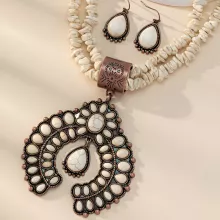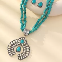 Use our battle tested marketing materials for Vintage Boho White Turquoise Squash Blossom Necklace and Earrings Set