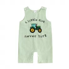 Looking for the perfect outfit to keep your baby boy comfy and cute this summer? This Baby Boy Summer Romper is the ultimate warm-weather essential! Featuring a fun trucker embroidery and classic stripes, this sleeveless jumpsuit blends playful charm with breathable comfort. Crafted with a soft cotton blend, it's designed to keep your little one cool, comfortable, and oh-so-stylish during hot days. With buttoned shoulder straps and easy snap closures at the crotch, changing time is a breeze—no more fussing when it’s time for a quick diaper change. The round neck and sleeveless cut ensure your baby stays cool, while the stretchy fabric allows for plenty of movement and all-day comfort. Whether it’s a family outing, a playdate, or a casual day at home, this romper adds just the right touch of personality to your baby’s look.Product Features