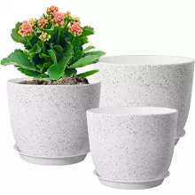 Crafted from high-quality plastic, these pots are both sturdy and lightweight, making them easy to move and rearrange whenever you want a new look. Each pot features built-in drainage holes with matching saucers, which prevent water from pooling at the bottom and help keep your plants healthy and thriving. With three different sizes—12 inches, 10 inches, and 9 inches in diameter—you can grow a variety of plants, flowers, or herbs, mixing and matching to fit your space perfectly.