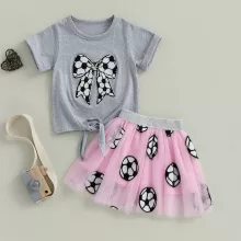 Use our battle tested marketing materials for Girls Summer 2-Piece Outfit with Bowknot Embroidery & Elastic Waist Skirt