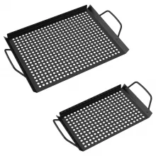 Use our battle tested marketing materials for 2Pcs BBQ Grilling Pans Perforated Iron Basket with Handle for Fish & Veggies