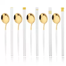 Use our battle tested marketing materials for Luxury 10-Piece Stainless Steel White Gold Dinnerware Set with Chopsticks