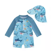 Use our battle tested marketing materials for Shark Print Toddler Boy Swimsuit with Sunhat