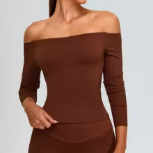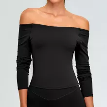 Use our battle tested marketing materials for Off Shoulder Long Sleeve Yoga Top – Women's Slim Fit Sports Shirt