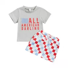 Get your little one ready for a star-spangled celebration with this charming 2-piece Independence Day baby outfit. Designed for both boys and girls, this set includes a playful letter-printed T-shirt paired with stylish checkerboard shorts for a patriotic yet trendy look. Whether you're heading to a family barbecue, a parade, or snapping those precious first 4th of July photos, this outfit is made for memories. Crafted from a soft cotton blend, it ensures all-day comfort so your baby can play, pose, or nap with ease.Perfect for Patriotic Moments