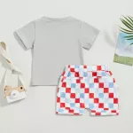 - 2-Piece Set: Includes a cute letter print T-shirt and checkerboard shorts