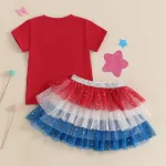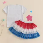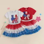 Get your little one ready to shine this Independence Day with this charming 2-piece outfit, perfect for festive family gatherings, parades, or backyard barbecues. Designed with a playful patriotic flair, this toddler girl 4th of July outfit includes a soft, breathable short sleeve romper with a cute letter bow embroidery, paired with a light and airy mesh skirt that twirls with every step. Whether she’s posing for photos or playing with friends, your toddler will look and feel like the star of the celebration. This set is not just stylish—it's made for comfort and movement. The romper features a classic crew neck and pullover design for easy dressing, while the soft cotton blend keeps her cool even on warm summer days. The mesh skirt adds a whimsical touch with its gentle flare and stretchy waistband, allowing her to move freely and play all day.Product Features