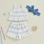 - 3-piece set: sleeveless ruffle tank top, shorts, and headband