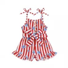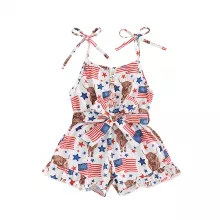 Get your little one ready for a star-spangled celebration in our Baby Girl 4th of July Romper. This charming sleeveless jumpsuit is made for fun-filled summer days, backyard BBQs, and fireworks under the stars. Designed with sweet tie straps, a comfy button-up front, and a matching belt, this playsuit brings patriotic flair with every detail. Crafted from a soft cotton-blend fabric with just the right amount of stretch, this romper keeps your toddler comfy and stylish all day long. Whether she's crawling, walking, or twirling in the sunshine, the flexible design supports every move while looking adorable in family photos. With a colorful print that captures the spirit of the season, it’s the perfect choice for July 4th festivities and beyond.Product Features