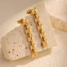 Use our battle tested marketing materials for Gold Plated Strap Chain Earrings for Women – Minimalist Geometric Studs