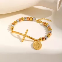 Use our battle tested marketing materials for Elegant Cross St. Benedict Oval Beaded Chain Bracelet for Women