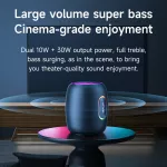 Experience powerful, room-filling audio with this portable Bluetooth speaker that delivers 50 watts of rich, clear sound in every direction. Designed to provide true 360-degree surround sound, it ensures you’re fully immersed in your favorite music, whether indoors or outdoors. The speaker’s deep bass and crystal-clear highs bring your playlists, podcasts, and movies to life with stunning clarity and dynamic range.